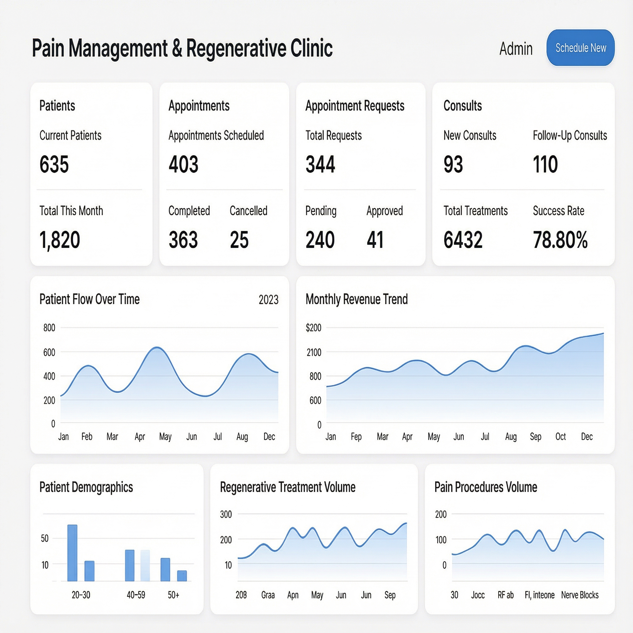 If your clinic offers injections, nerve blocks, PRP, RF ablation, stem-cell-based therapies, or similar procedures, our system is built for you.